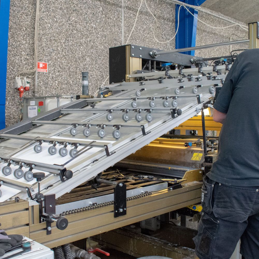 På vores automatiske opklæber kan vi håndtere formater op til 110×160 cm.